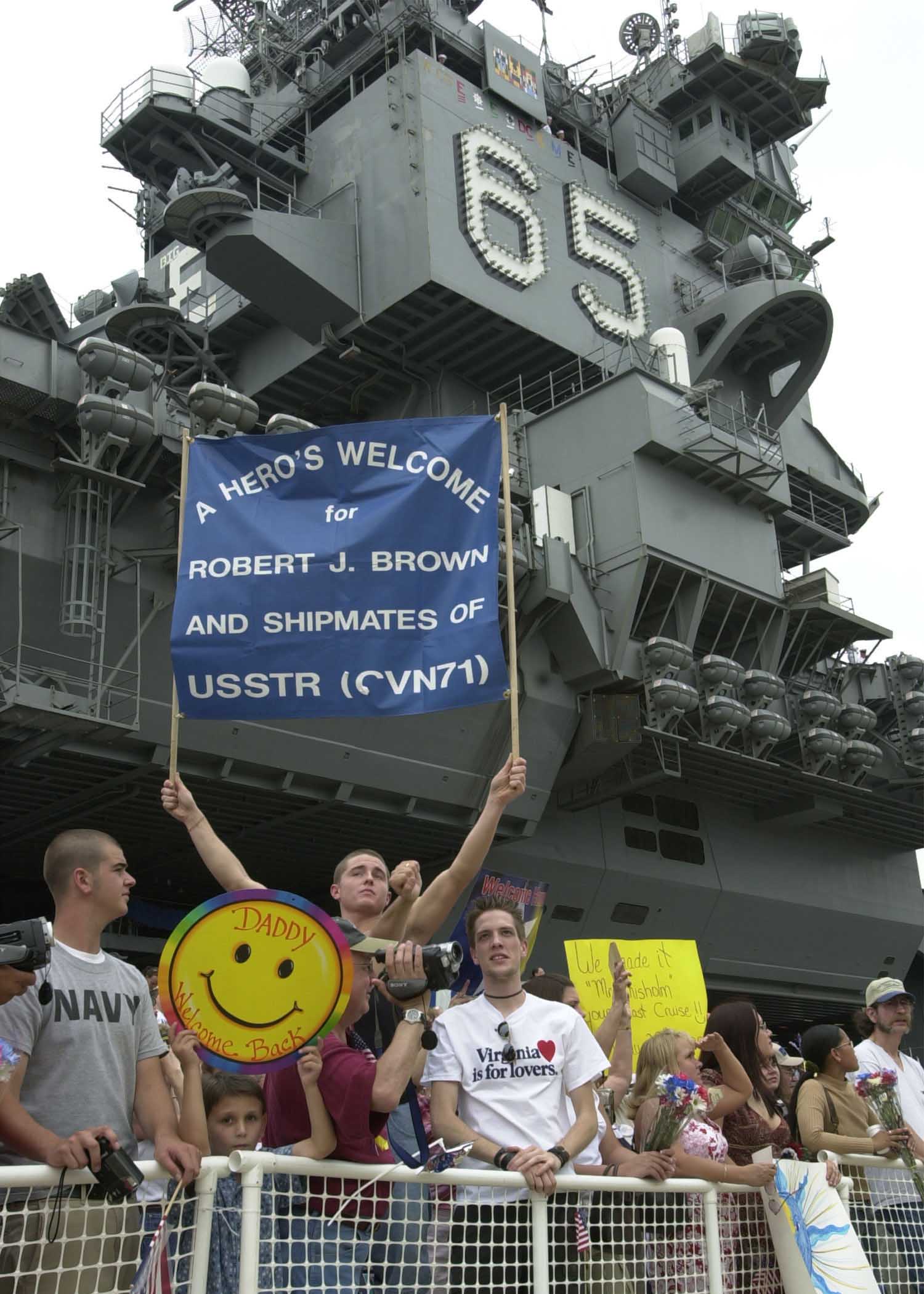 anxiously await the carrier's return to her homeport of Naval Station