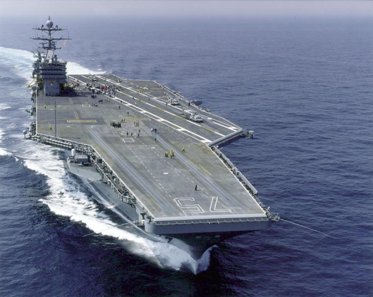 The Navy's newest aircraft carrier PCU Harry S. Truman (CVN 75) sails off the coast of Virginia during her initial shipyard sea trials.  (U.S. Navy photo by Chief Photographer's Mate Tom Wynn) (RELEASED)