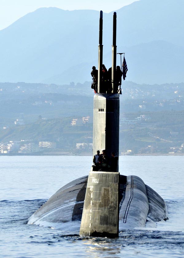 SOUDA BAY, Crete, Greece (March 17, 2009) -- The Los Angeles class attack submarine USS Scranton (SSN 756) gets underway after a routine port visit to Souda Bay. Scranton is deployed as part of the Eisenhower Carrier Strike Group and is deployed to the U.S. 6th Fleet area of responsibility. U.S. Navy photo by Paul Farley (Released)