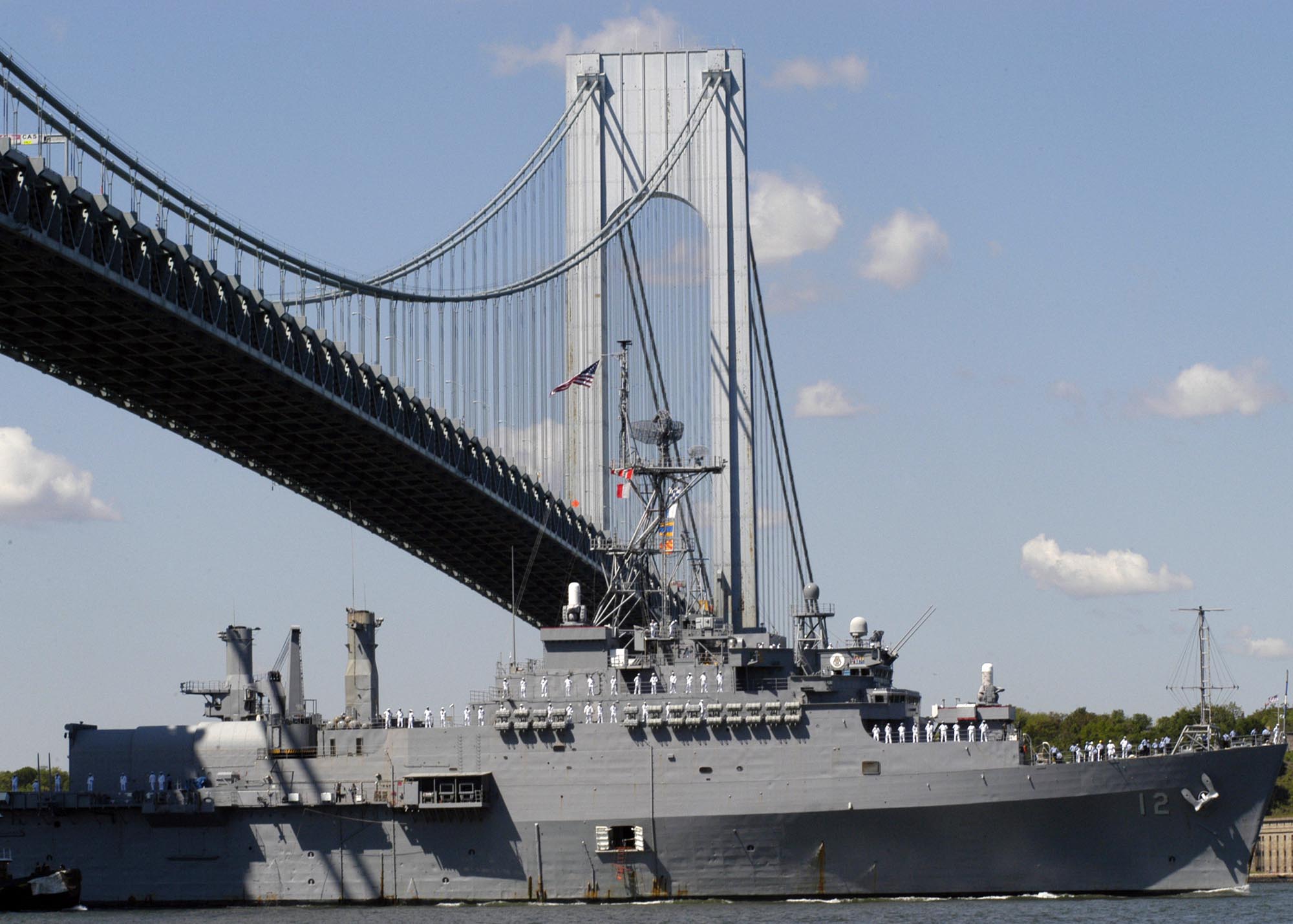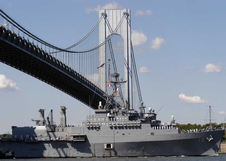 Shreveport (LPD 12) sails under the Verrazano-Narrows Bridge headed for