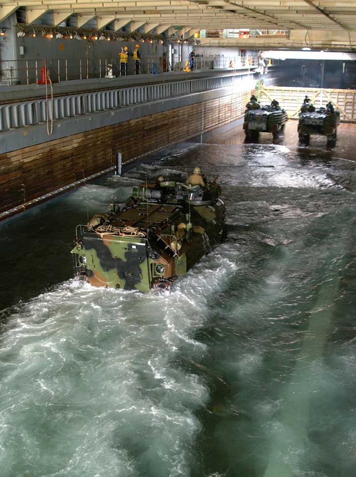 (MEU) enter USS Fort McHenry's well deck. The AAVs, embarked from