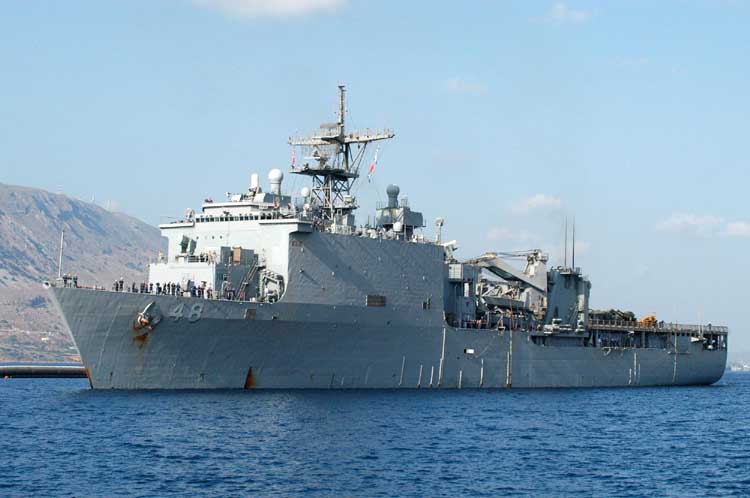 Souda Bay, Crete, Greece (Sep. 1, 2005) -- The dock landing ship USS Ashland (LSD 48) and embarked elements of 26th Marine Expeditionary Unit (MEU), arrive in Souda Harbor for a routine port visit on Greece's largest island. Ashland is assigned to the Kearsarge Expeditionary Strike Group and has been on a regular deployment from its homeport of Little Creek, Va., since March. U.S. Navy photo by Paul Farley (RELEASED)