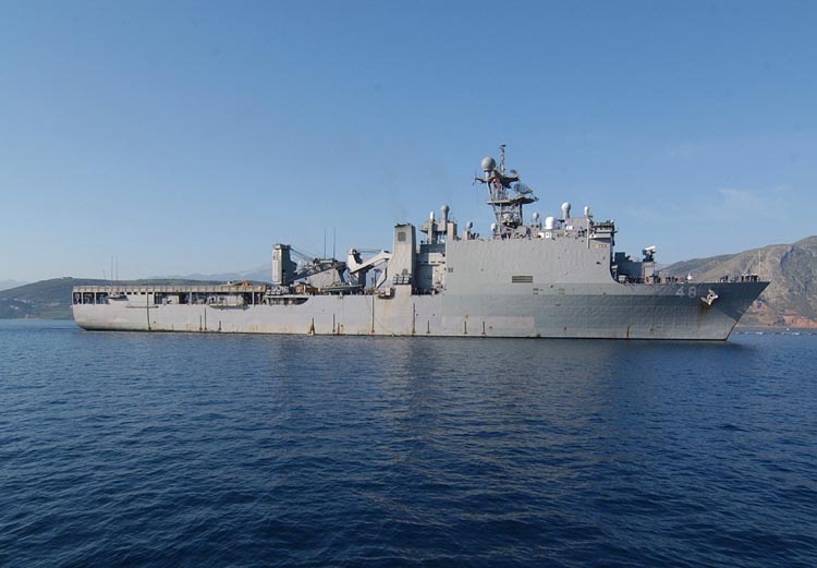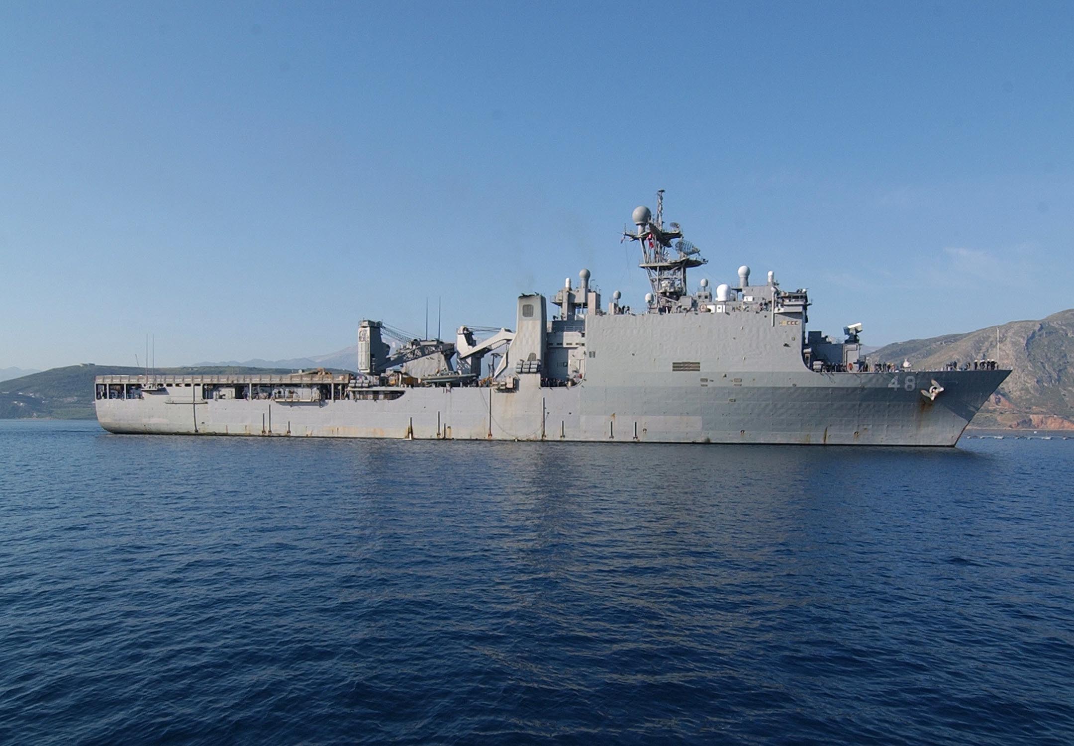 ship USS Ashland (LSD 48) arrives in Souda harbor for a routine port