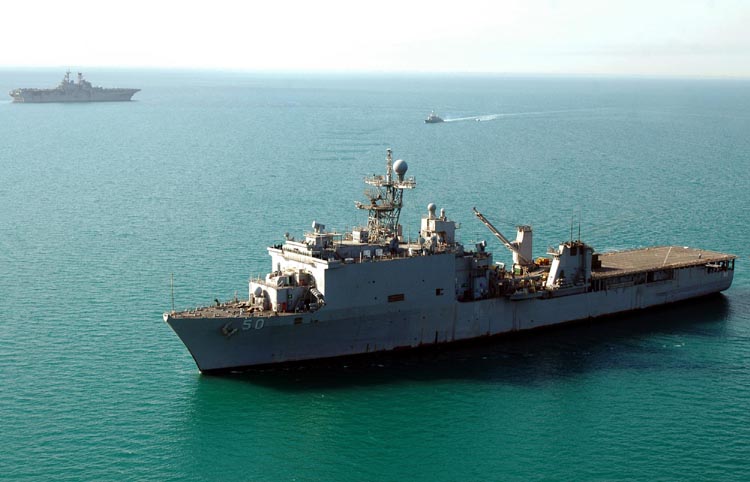 PERSIAN GULF (Jan. 12, 2009) -- The amphibious dock landing ship USS Carter Hall (LSD 50) transits the Persian Gulf. Iwo Jima is deployed as part of the Iwo Jima Expeditionary Strike Group supporting maritime security operations in the U.S. 5th Fleet area of responsibility. U.S. Navy photo by Mass Communication Specialist 2nd Class Michael Starkey (Released)