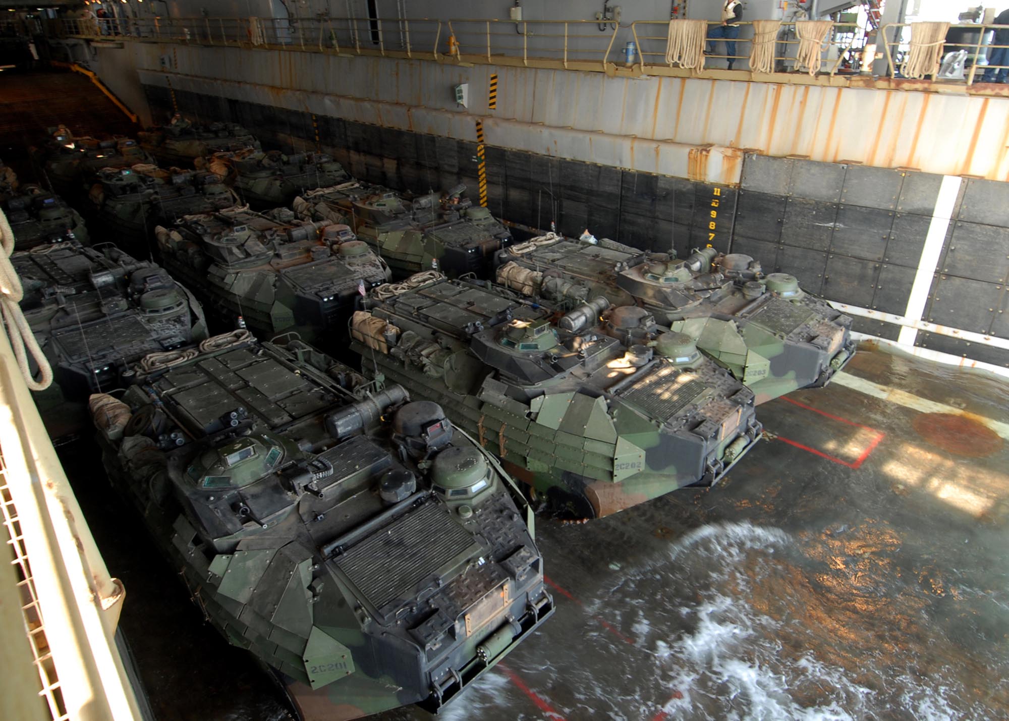 PERSIAN GULF (Dec. 29, 2008) -- Amphibious assault vehicles from the 26th Marine Expeditionary Unit (26 MEU) prepare to disembark from the well deck of the amphibious dock landing ship USS Carter Hall (LSD 50). Carter Hall is deployed as part of the Iwo Jima Expeditionary Strike Group supporting maritime security operations in the U.S. 5th Fleet area of responsibility. U.S. Navy photo by Mass Communication Specialist 2nd Class Flordeliz Valerio (Released)