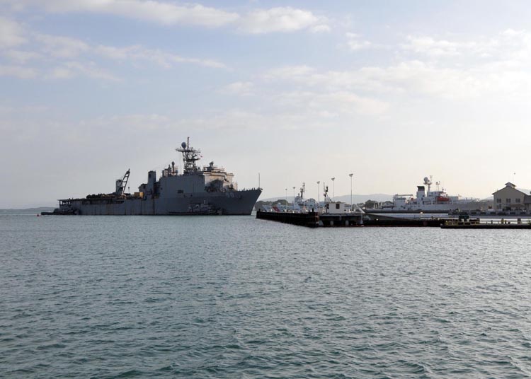 GUANTANAMO BAY, Cuba  (March 1, 2010) -- The amphibious dock landing ship USS Carter Hall (LSD 50) arrives at Naval Station Guantanamo Bay, Cuba for an environmental wash down on the ship's equipment which was used to support Operation Unified Response in Haiti. The environmental wash down is required in order to bring equipment back into the United States. U.S. Navy photo by Chief Mass Communication Specialist Bill Mesta (Released)